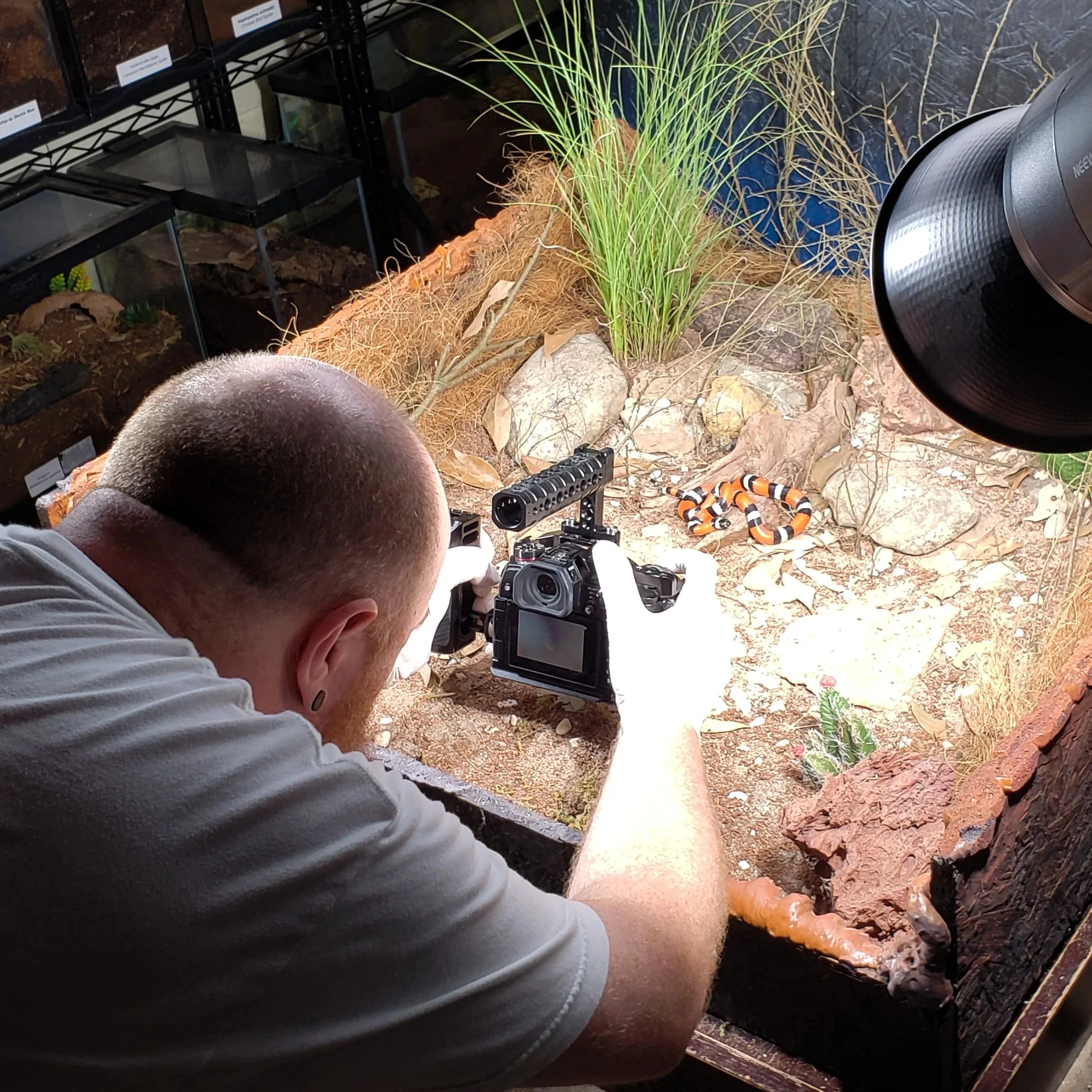 As far as I know, this is the only studio in the country dedicated the videography and photography of tarantulas, spiders, and other arachnids and invertebrates. Here I have over 2000sq ft dedicated to giving my tarantulas, invertebrates and reptiles the best possible homes they could have in captivity. With dedicated stations built specifically for filming tarantulas, their safety always comes first. This is true whether I am filming or photographing spiders in the wild or captivity.